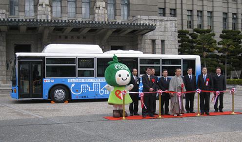 京都市では、「EV(電動)バス運行に関する実証実験」の開始に伴う出発セレモニーが2月10日に開催され、2月10日(木)~16日(水)(13日(日)を除く)まで、1日5回の実証試験が行われます。間 平成23年2月10日(木)~16日(水)(13日(日) 実証試験に先立ち、2月5日(土)~9日(水)(6日(日)を除く。)の期間、市内での試験走行が行われます。また、試験走行及び実証実験の期間中、必要に応じて京都市役所前広場で充電を行います。