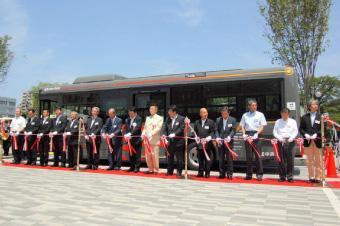 秋田電気バス「ELEMO-AKITA」一般公開されました。 2012.07.24 会社情報 株式会社東京アールアンドデーがあきたEVバス実証コンソーシアム展に納入した電気バスが、秋田市の再開発事業である「エリアなかいち」のオープニングに合わせて7月21日に一般公開されました。 出発式にはコンソーシアムの支援企業として取締役 金子明夫が出席致しました。