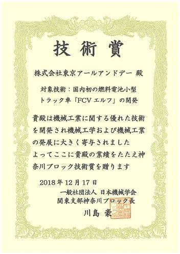 環境省委託・FC小型トラック技術開発が日本機械学会・神奈川ブロック 技術賞を受賞しました。 2018.12.17 ニュース 環境省委託・燃料電池(FC)小型トラック技術開発(※)が日本機械学会・神奈川ブロック技術賞を受賞しました。ご関係の皆様に感謝申し上げます。どうもありがとうございます。 ※ CO2排出削減対策強化誘導型技術開発・実証事業 燃料電池小型トラックの技術開発・実証