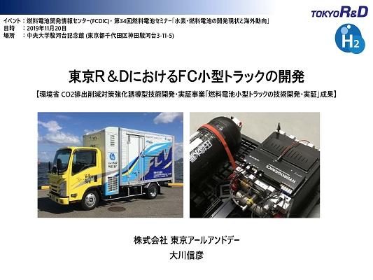 FCDIC講演にお越し下さりありがとうございました 2019.11.22 ニュース (一社)燃料電池開発情報センター(FCDIC)主催の「第34回燃料電池セミナー」にて、担当大川が燃料電池小型トラック開発について講演させて頂きました。次世代自動車、水素・燃料電池、FCVに関するお問い合わせ等がございましたらお気軽にご連絡下さい。